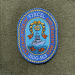 A patch for an Arleigh-Burke Class Aegis Guided Missile Destroyer of the Fishbowl Kingdom Navy: the FKN 𝘍𝘪𝘯𝘤𝘦𝘭 (AKA the "Fuckin Fincel")